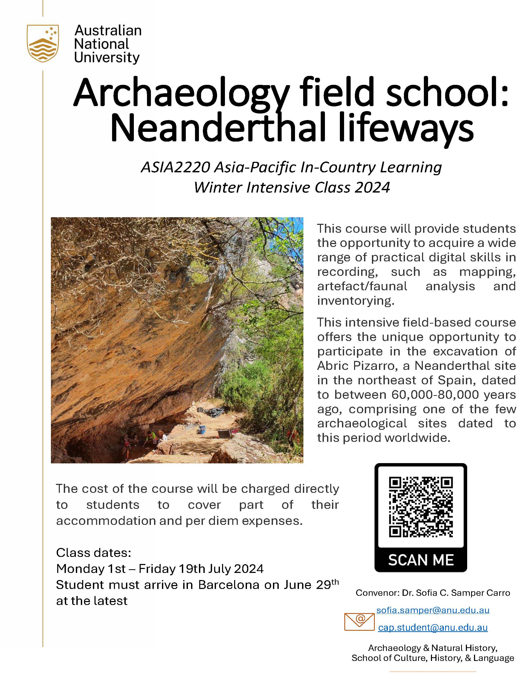 Participants will be offered the unique opportunity to get involved in the excavation of Abric Pizarro, a Neanderthal site in Spain, dating back 60,000-80,000 years. It's one of the few sites worldwide from this period.